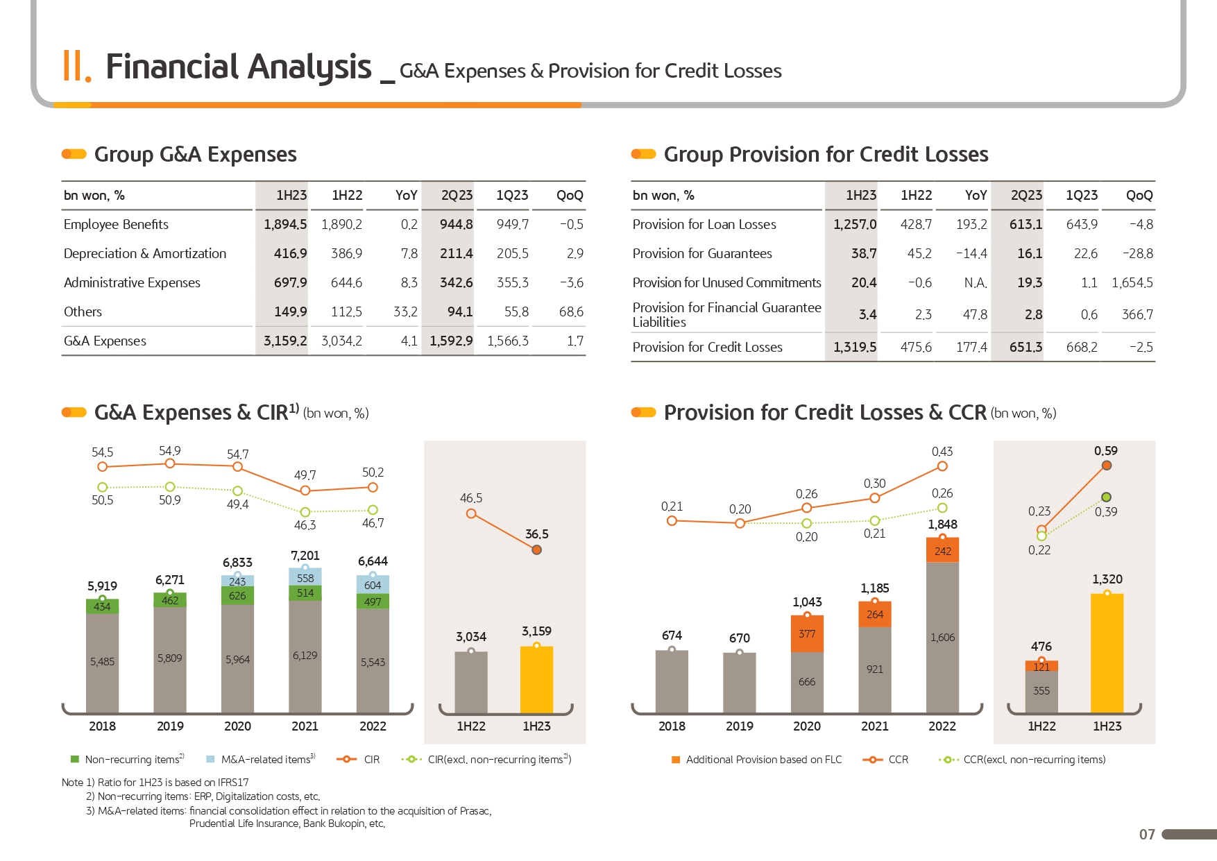 Next, I would like to go over SG&A. The group's cumulative G&A expenses in the 1H23 posted KRW