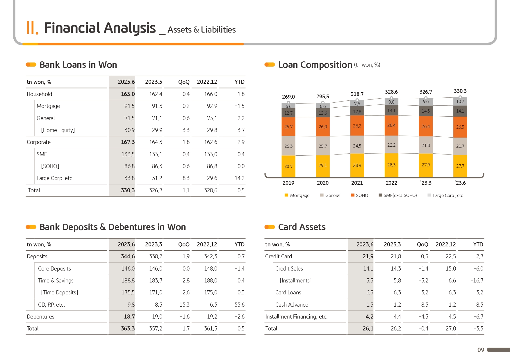 Meanwhile, as of the end of June, household loans posted KRW 163 trillion, down by 1.8% YTD due