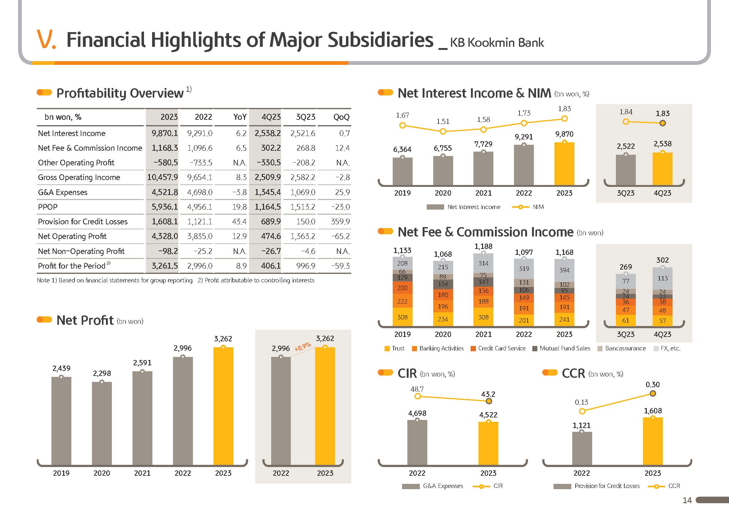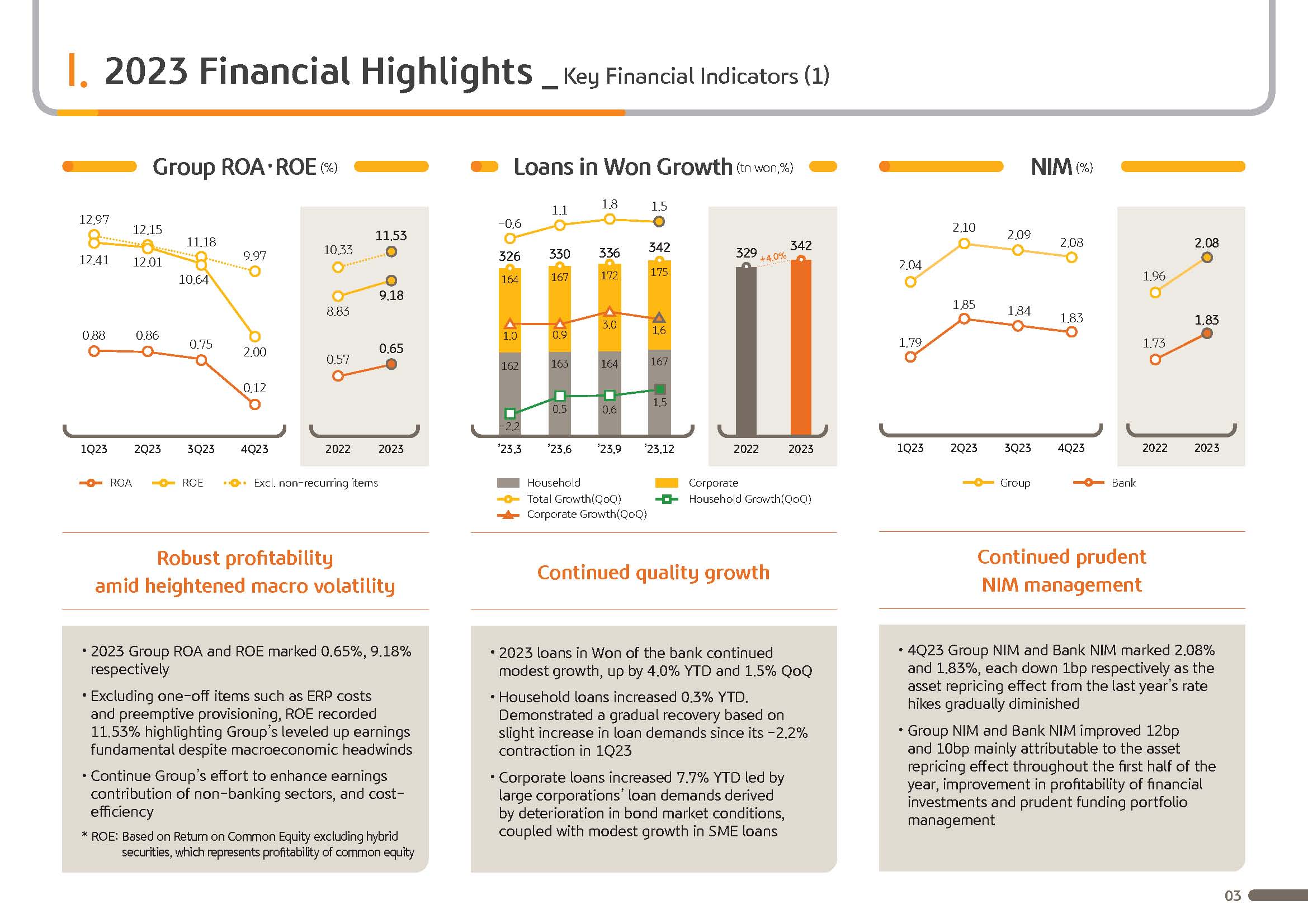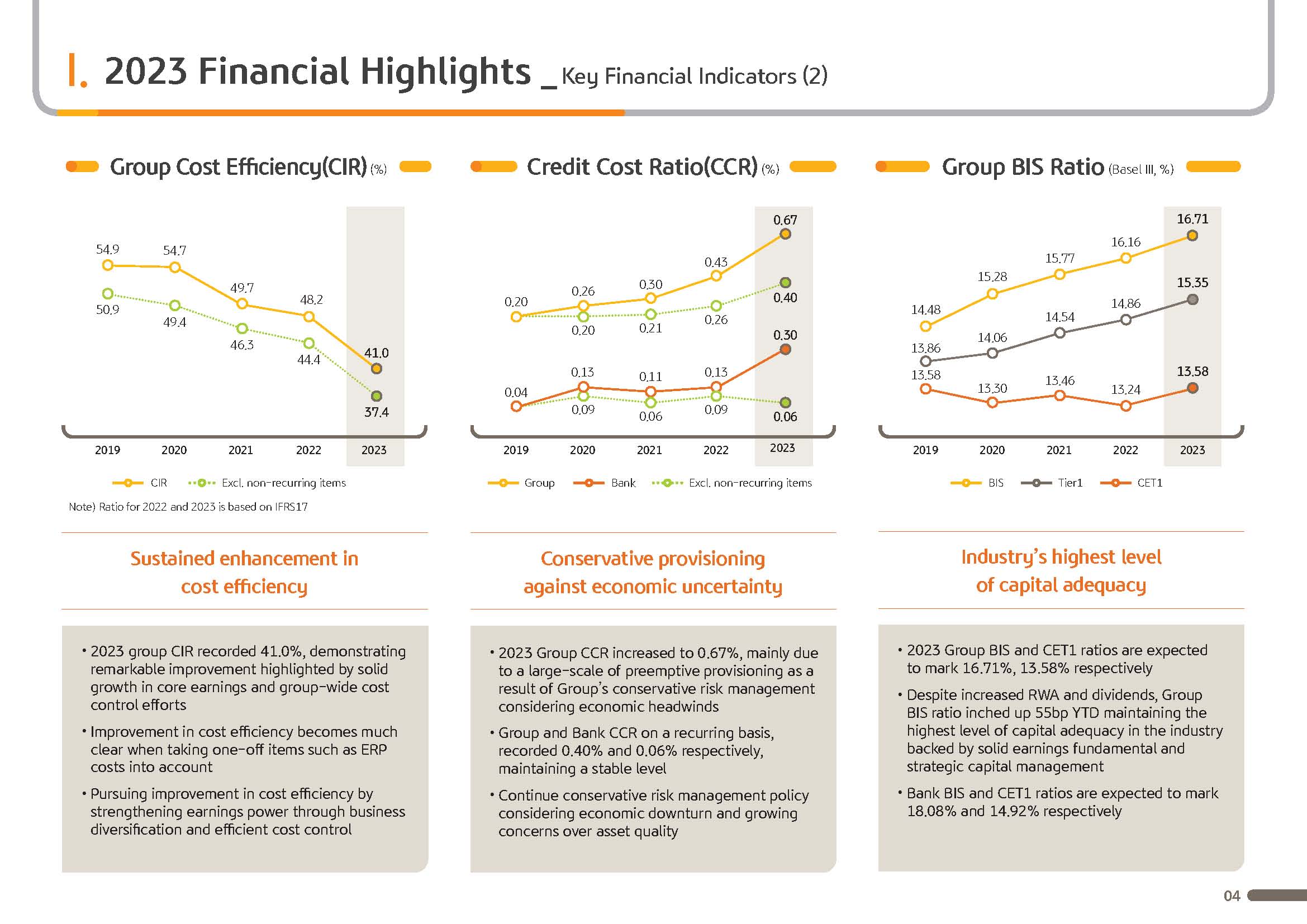 On the next page, I will explain the key financial indices. First, the group's profitability. KBFG's 2023