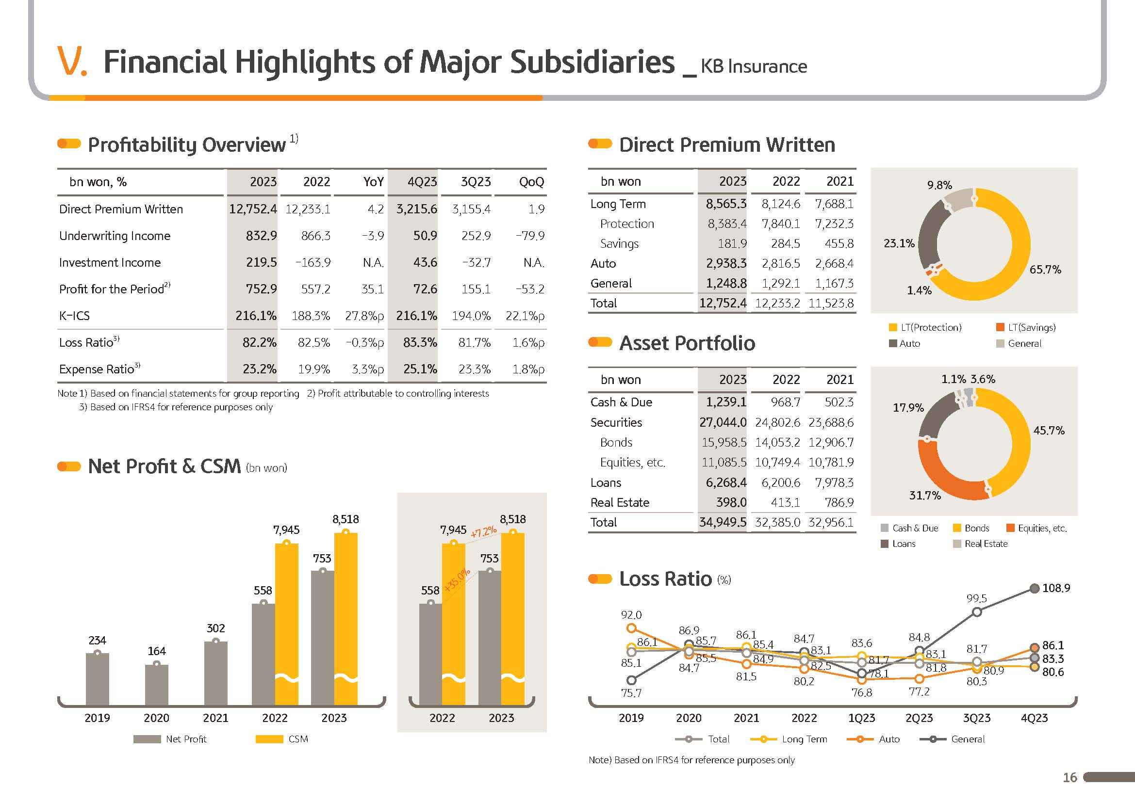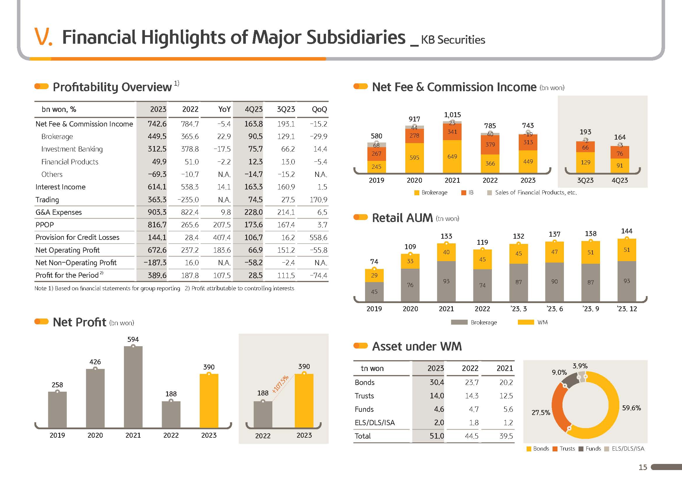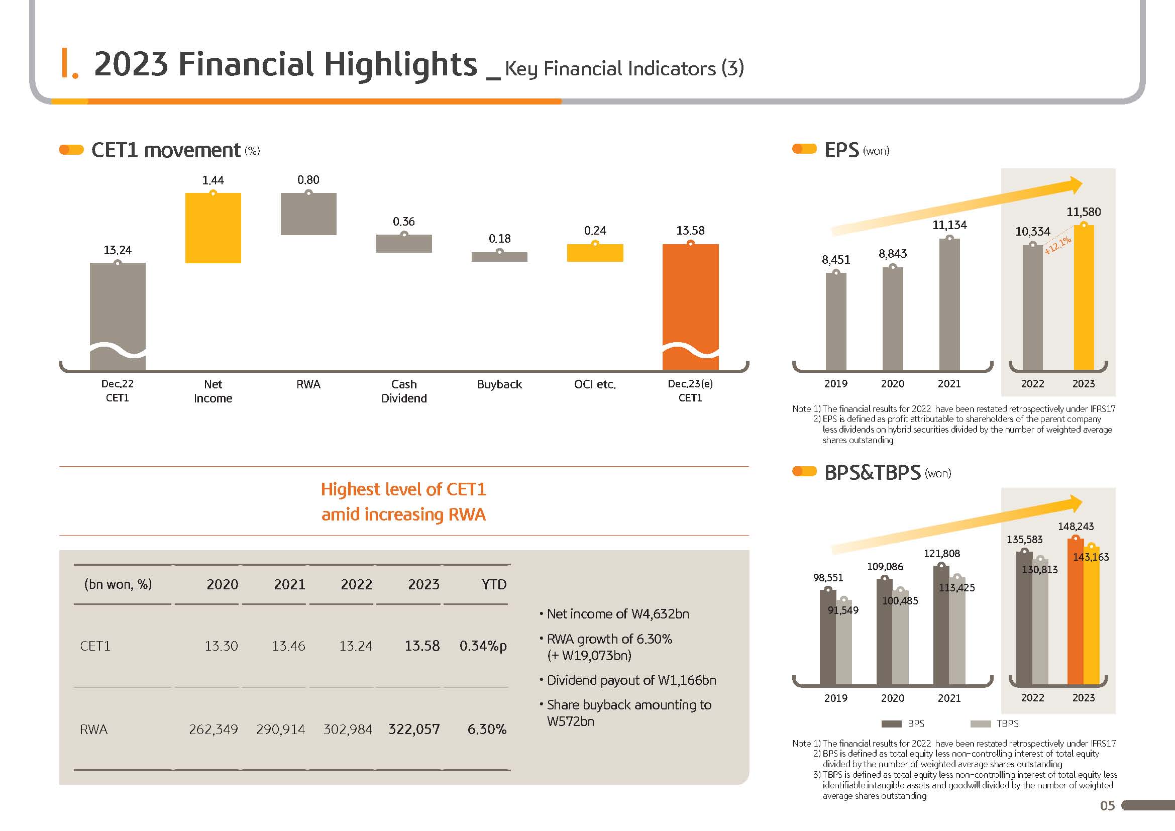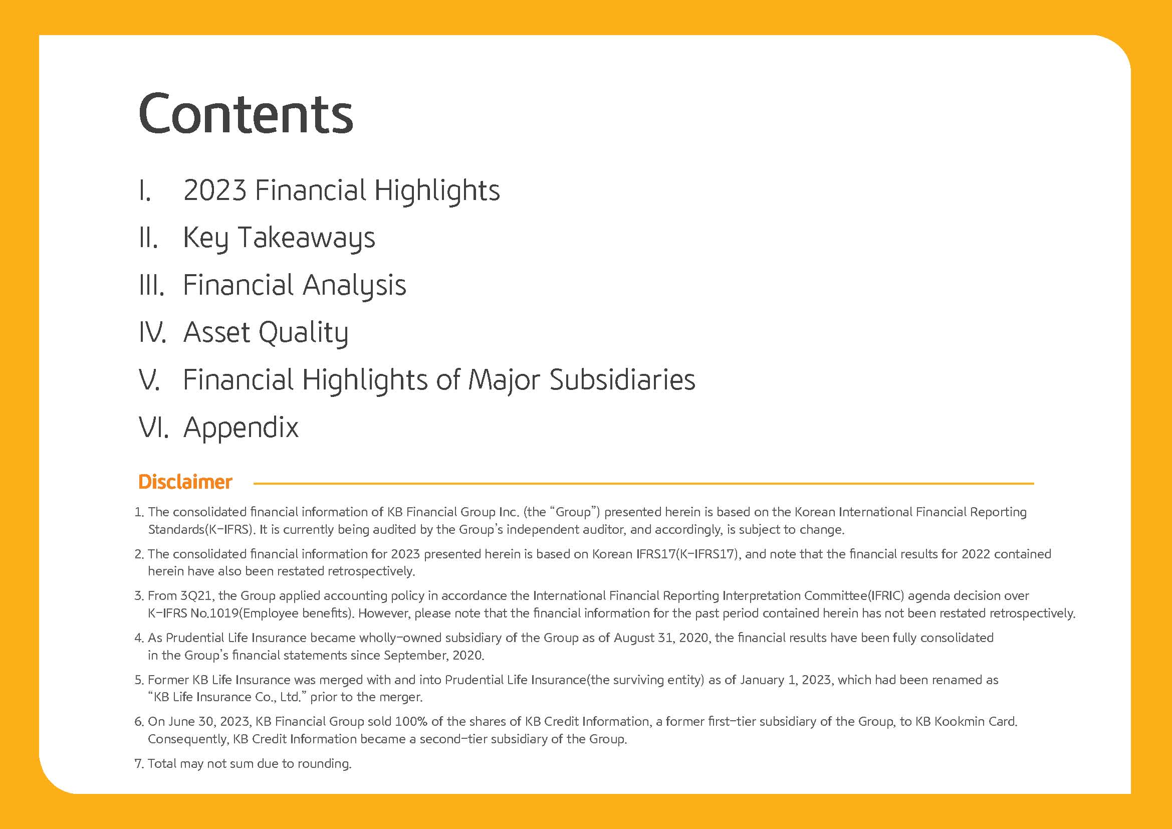 On the next page, I will explain the key financial indices. First, the group's profitability. KBFG's 2023