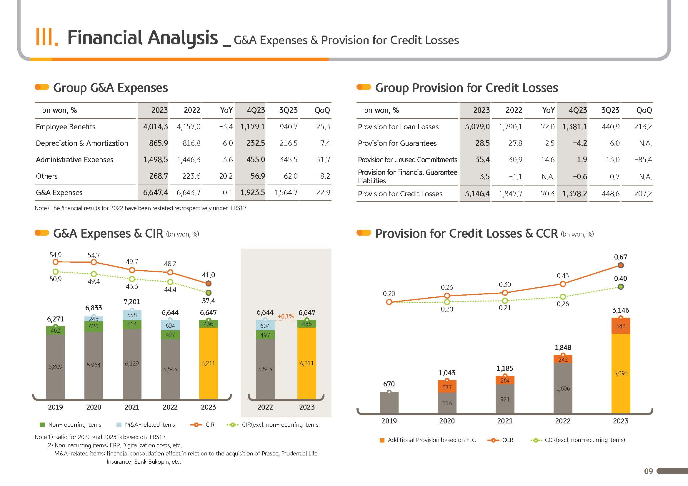 Next is on G&A expenses. In 2023, the G&A expense posted KRW 6,647.4 billion. As has been previously