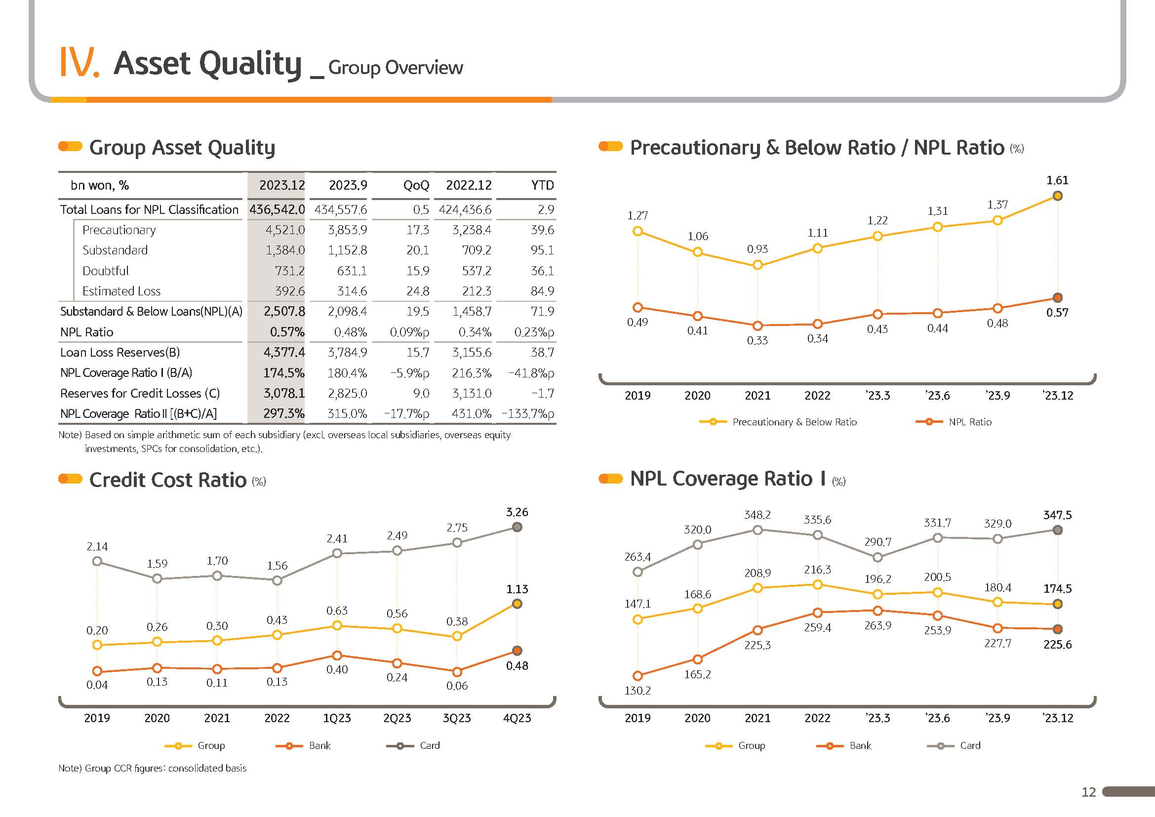Finally, the group's credit loss provisions. In Q4 the credit loss provisions posted KRW 1,378.2 billion,