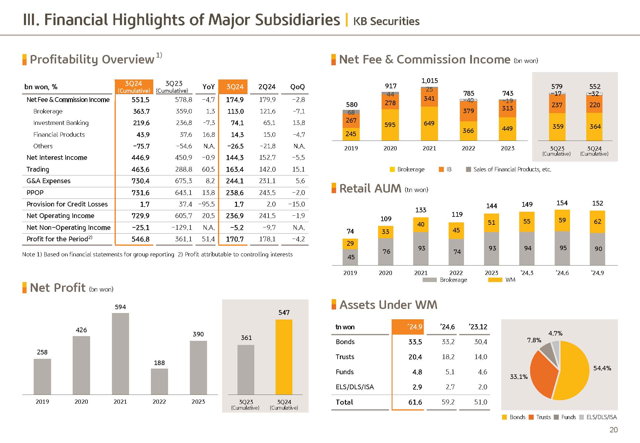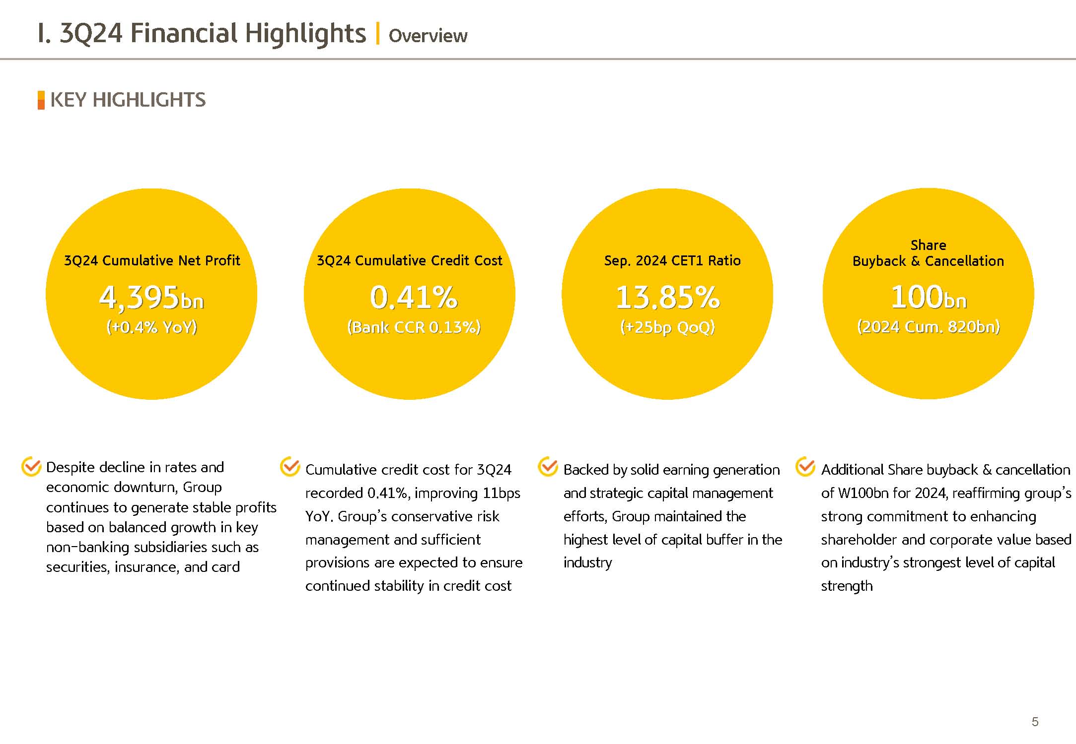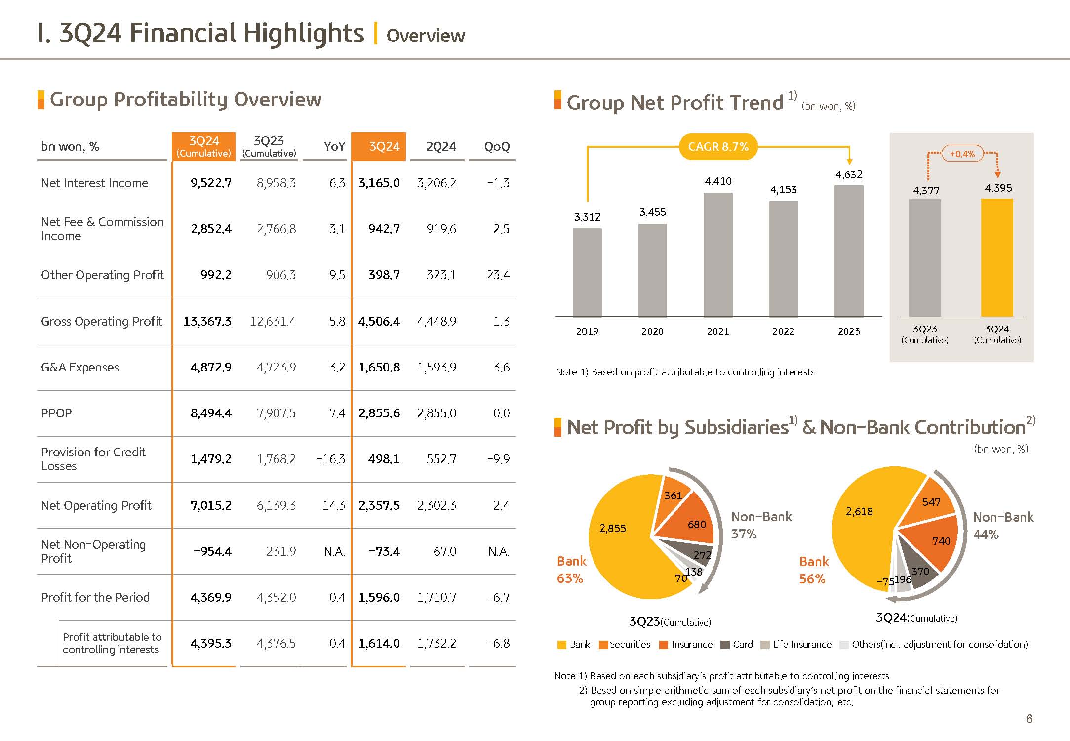 '24. The group's Q3 2024 cumulative net profit was KRW4.3953 trillion, up 0.4% year over year. This is
