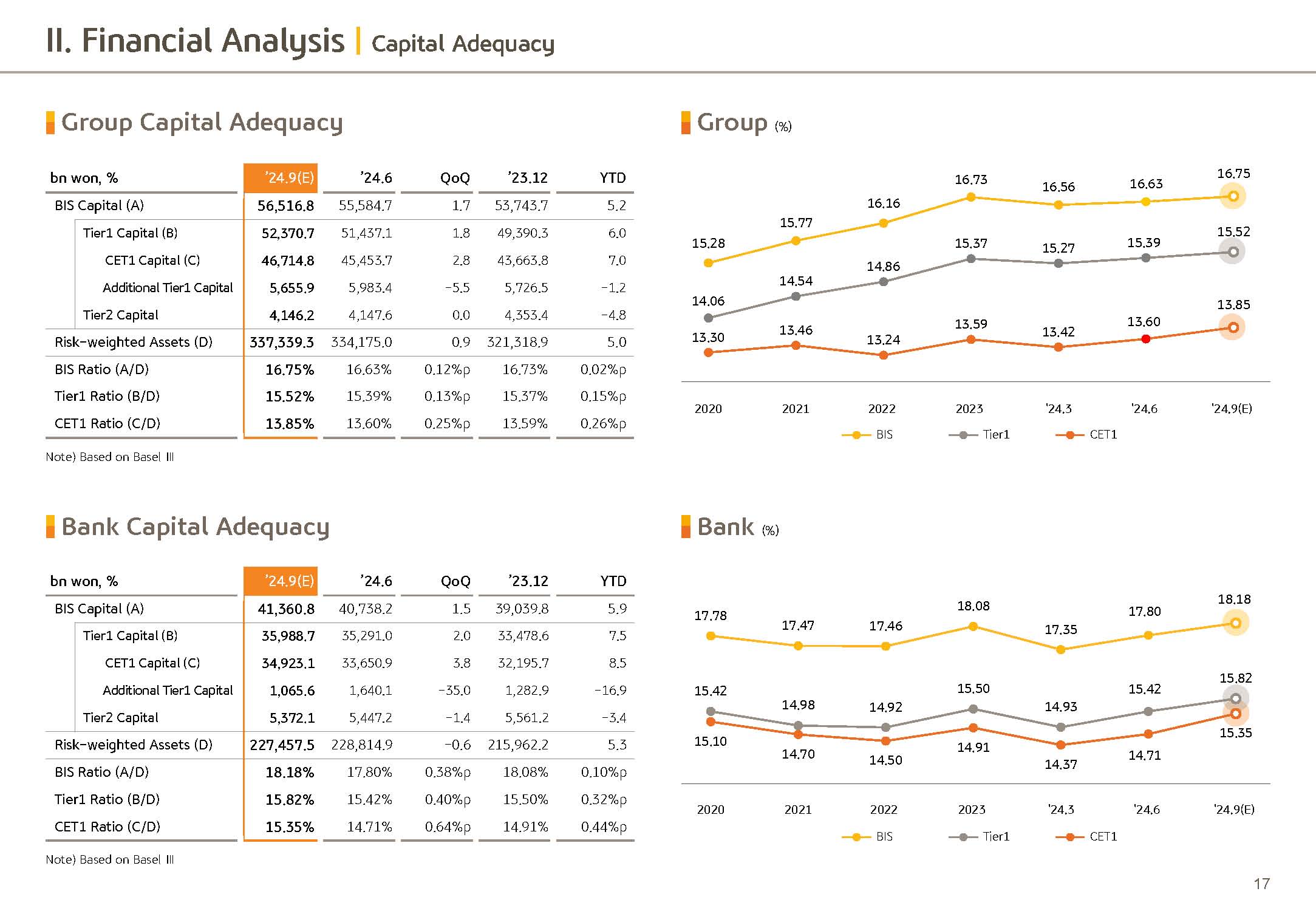 In September, base BIS ratio and CET1 ratio is expected to post 16.75% and 13.85%, respectively. As I