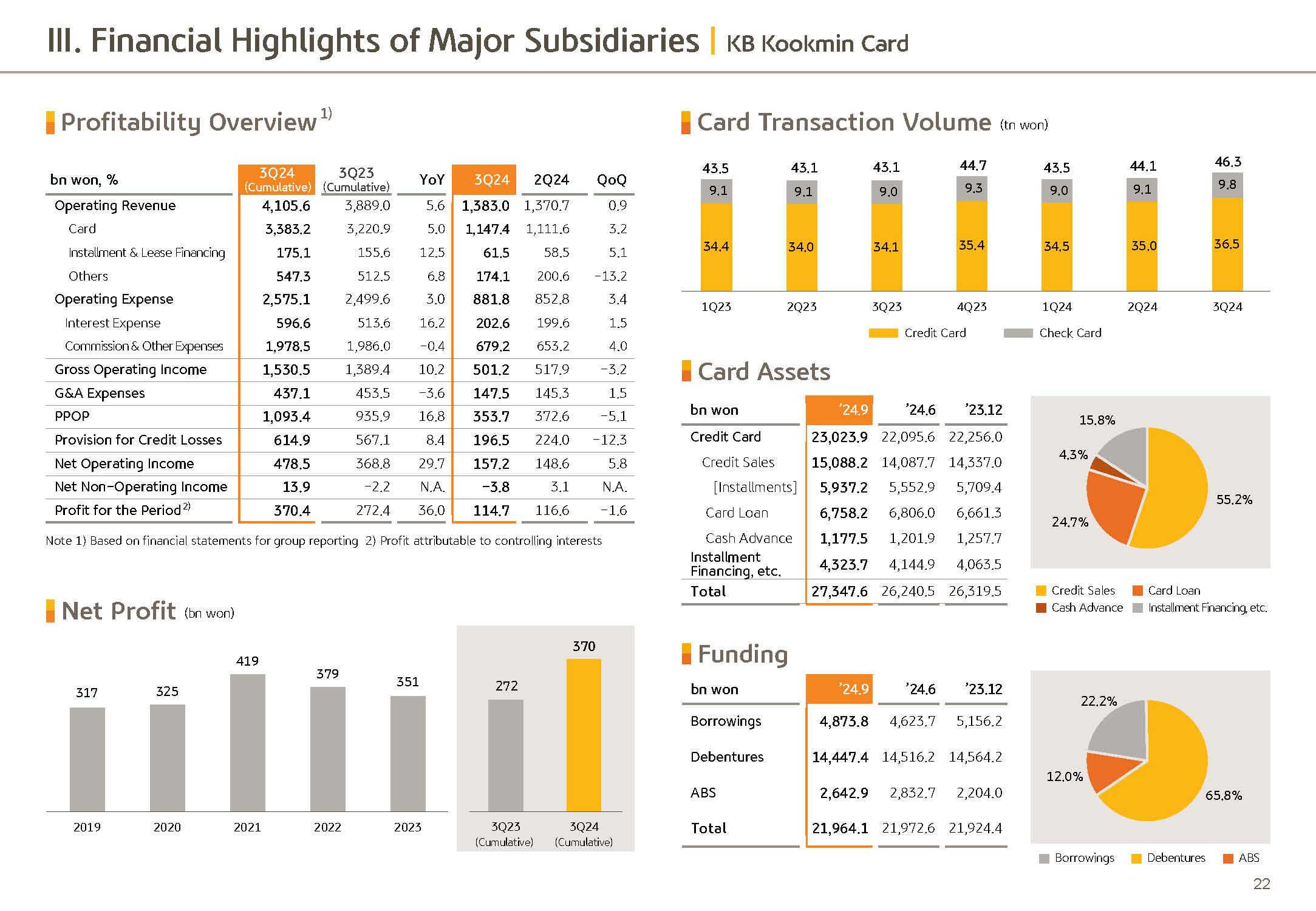 at non-bank subsidiaries, including KB card, savings bank and real estate trust.