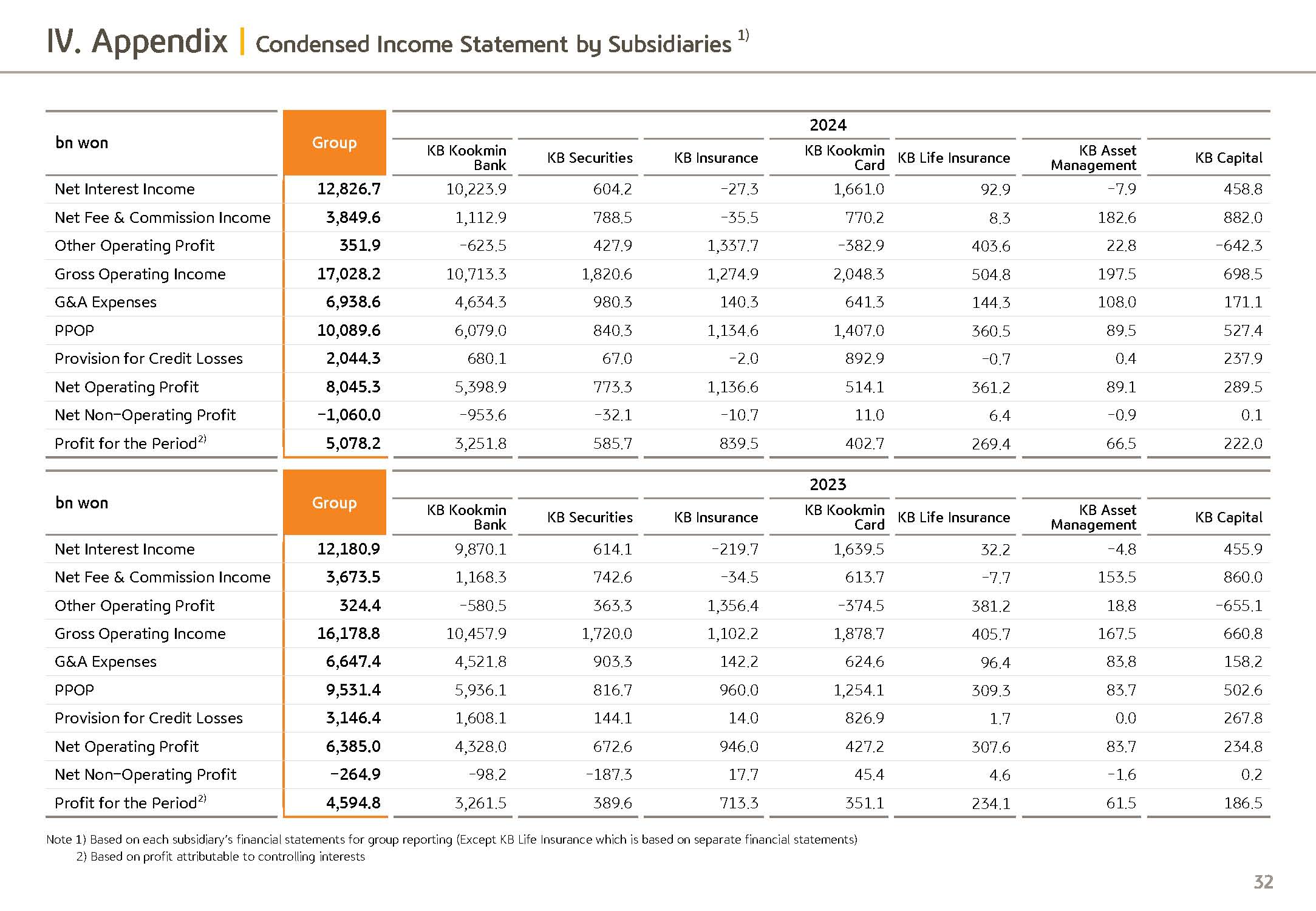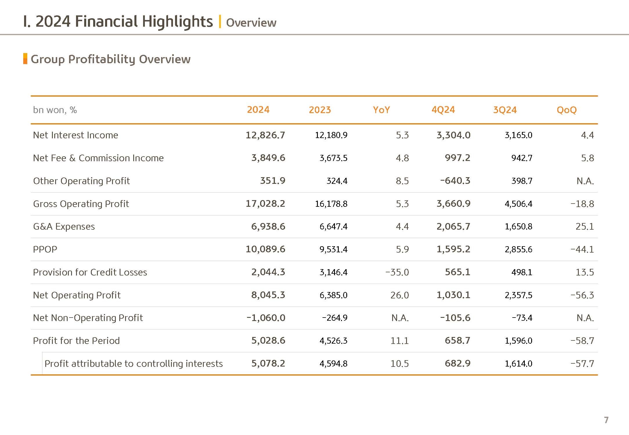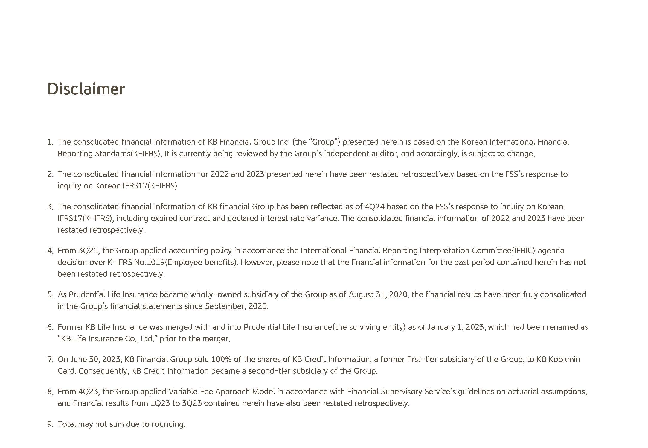 From next page onwards, I will walk through KBFG's performance highlights for 2024.