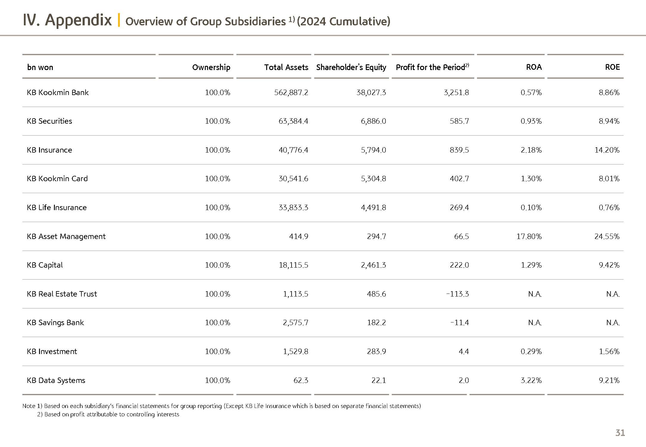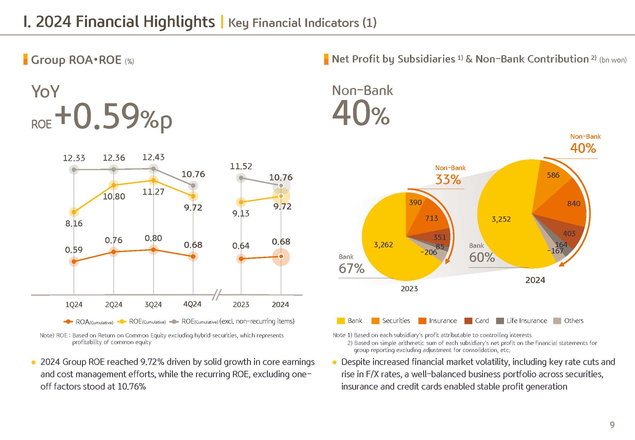 First, group's profitability indicators. As aforementioned, KB Financial Group's 2024 ROE posted 9.72% and