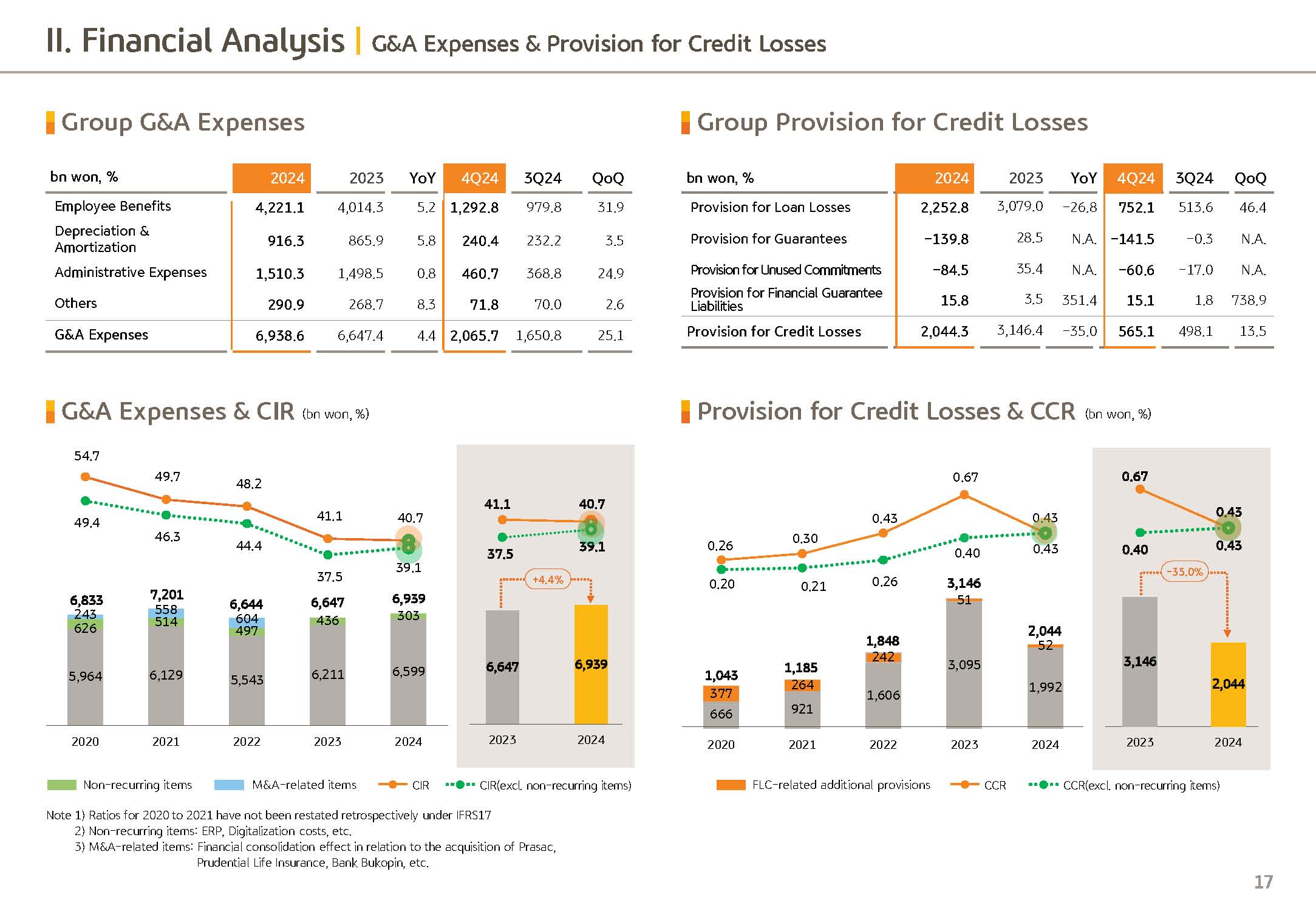 Lastly is group provisioning for credit losses. 2024 group provisioning for credit losses posted KRW
