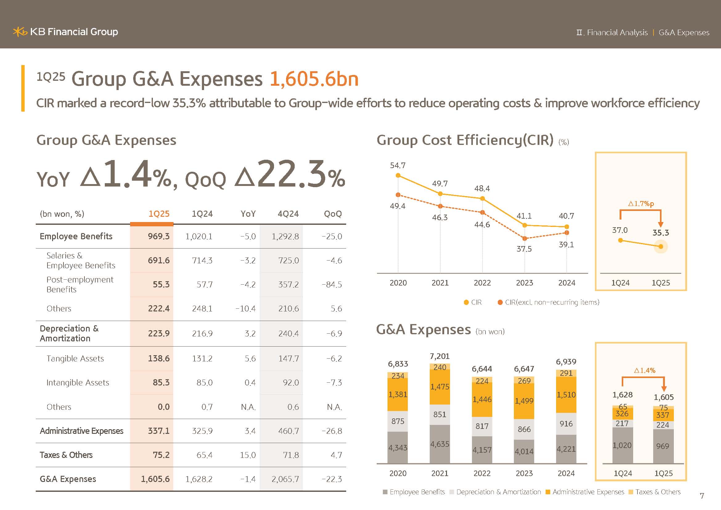 In the first quarter, G&A were kept at stable KRW1.6056 trillion, down 1.4% Y-o-Y, thanks to