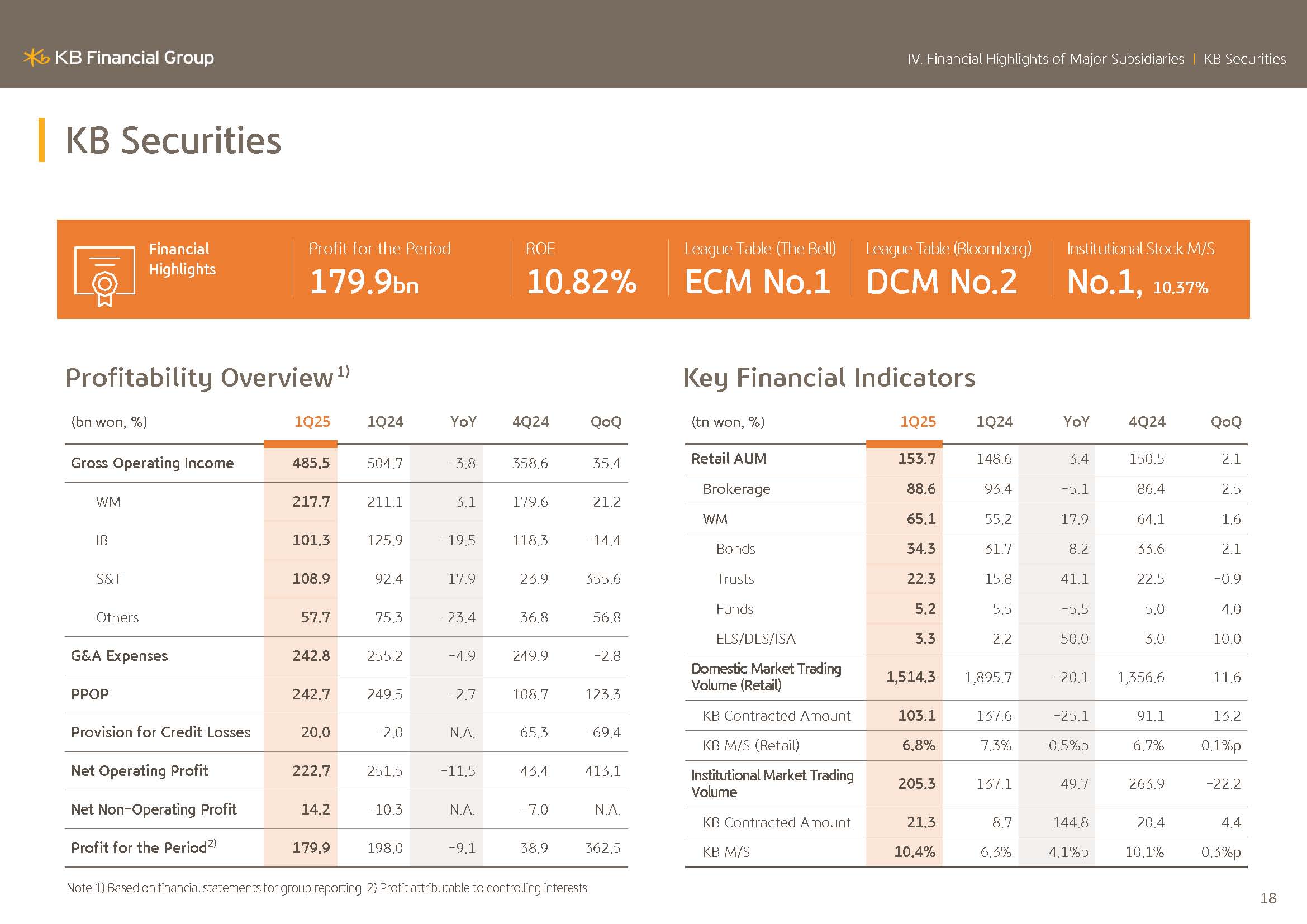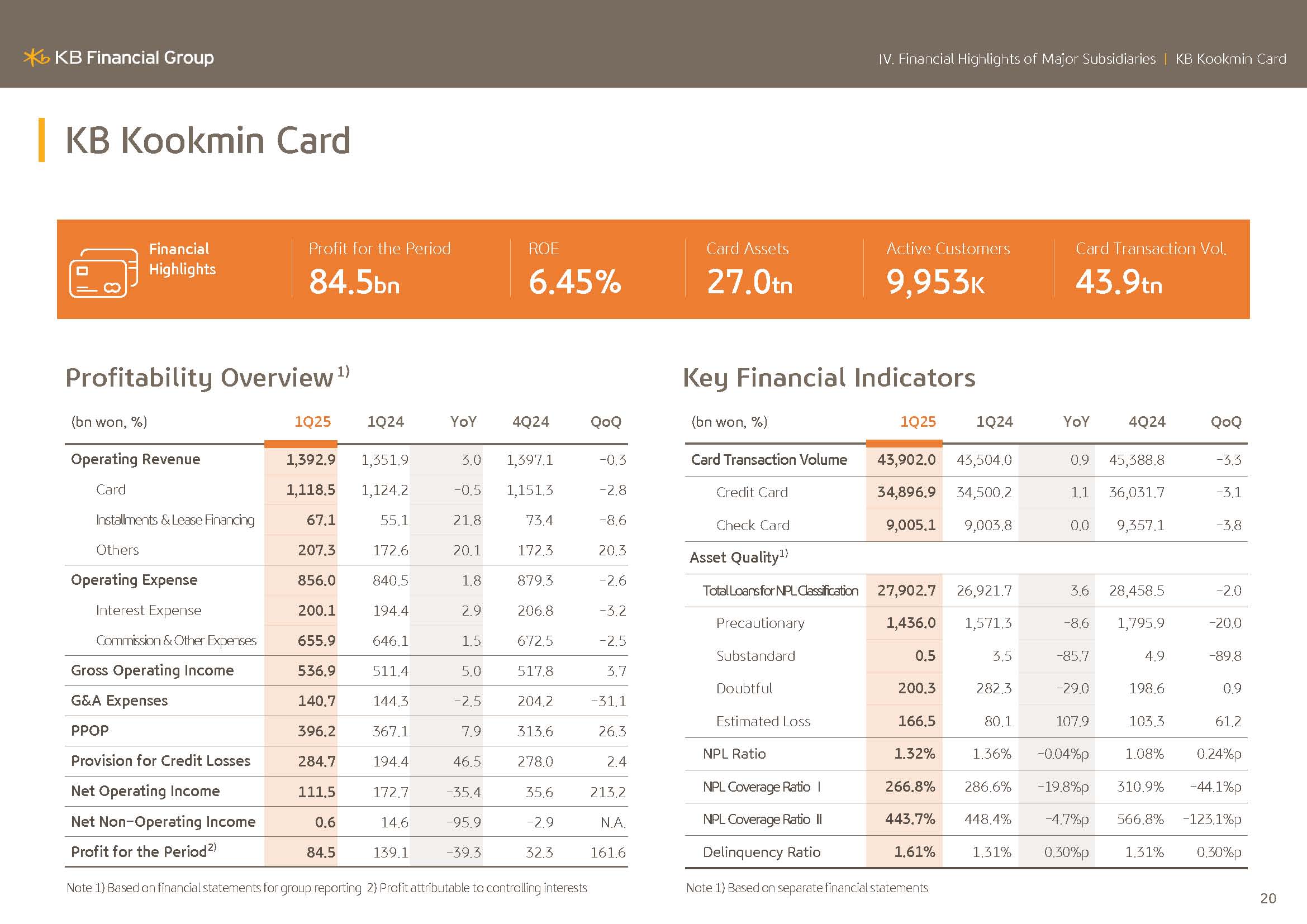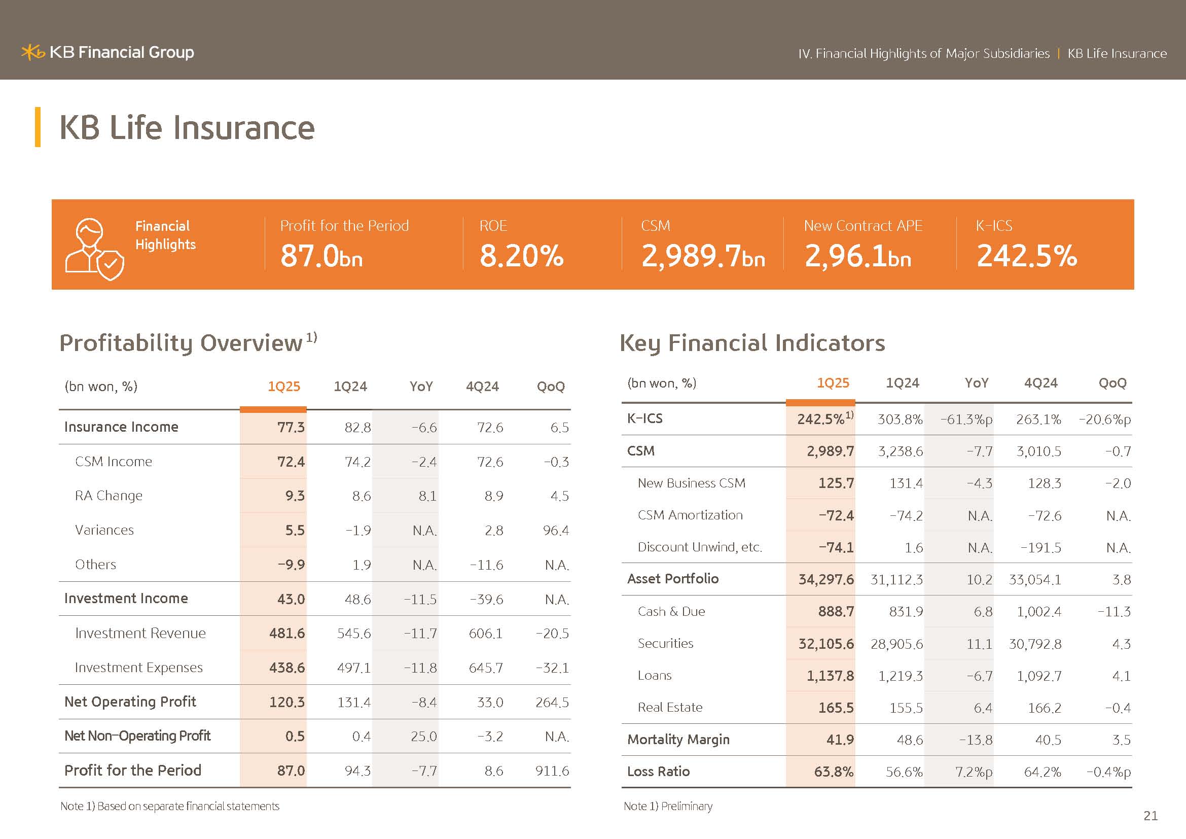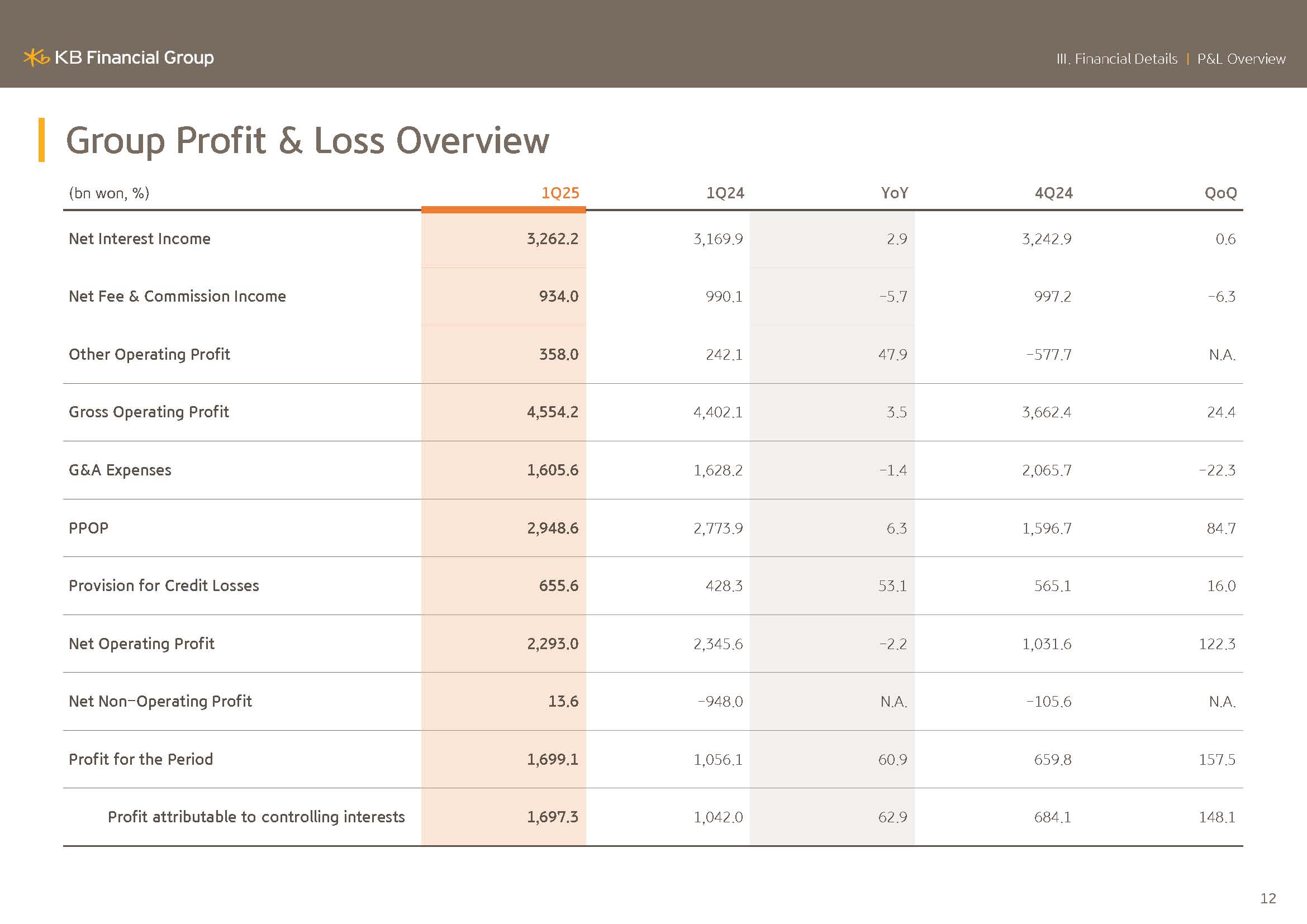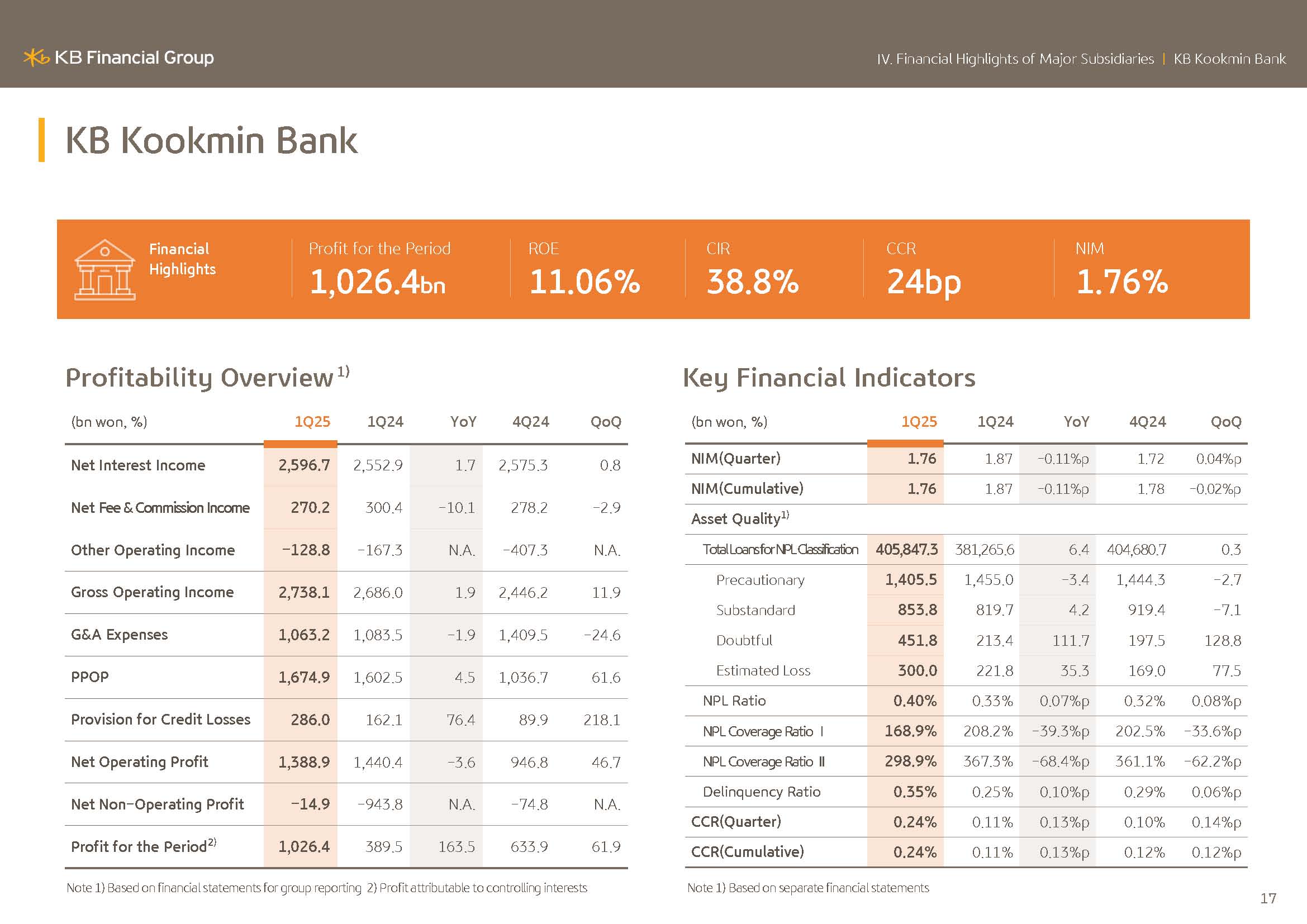 I will elaborate on KBFG financial performance. KBFG 2025 Q1 net profit posted KRW1.6973