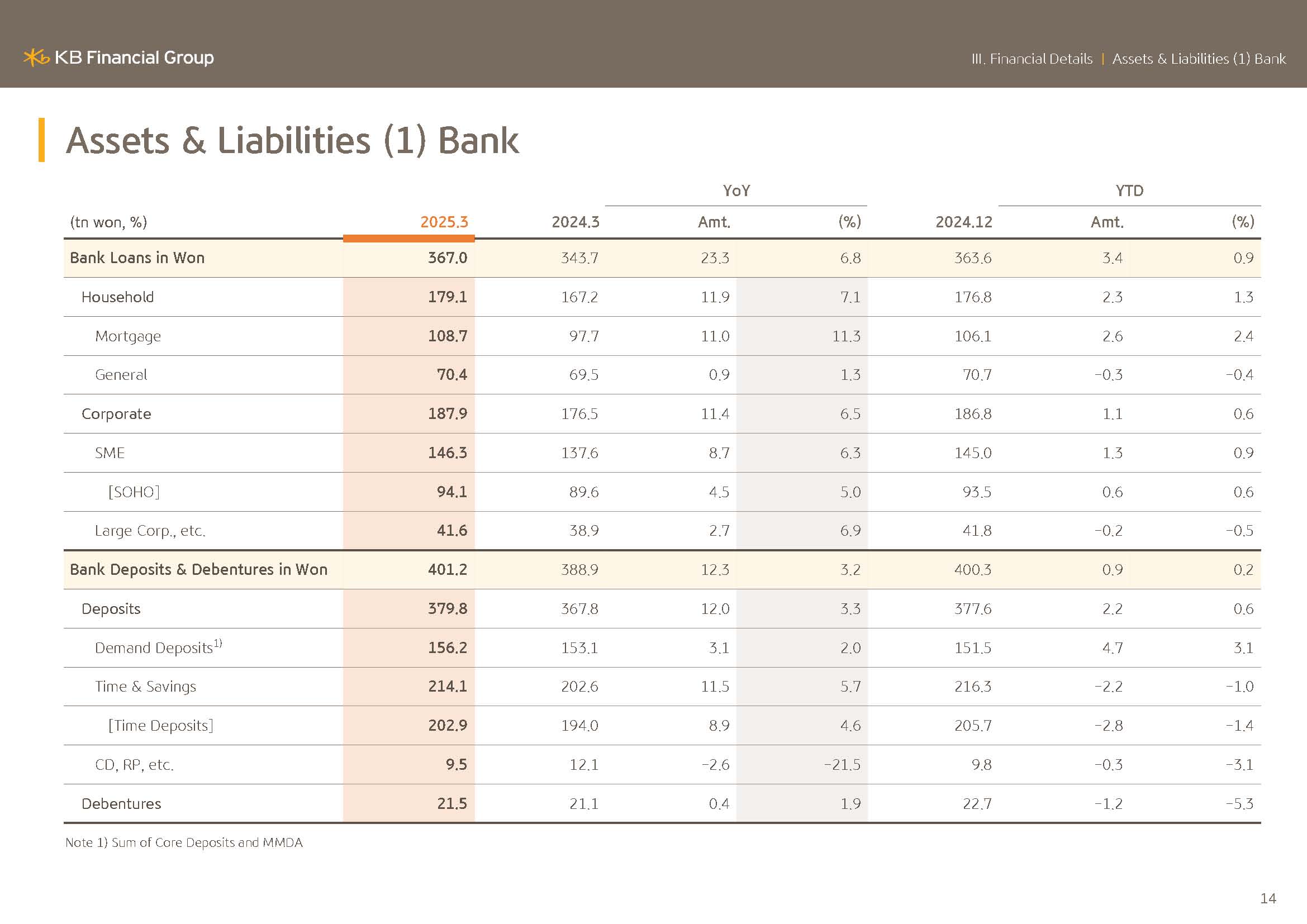 on the banks of Korean won loans. As of the end of March 2025, the bank's total Korean