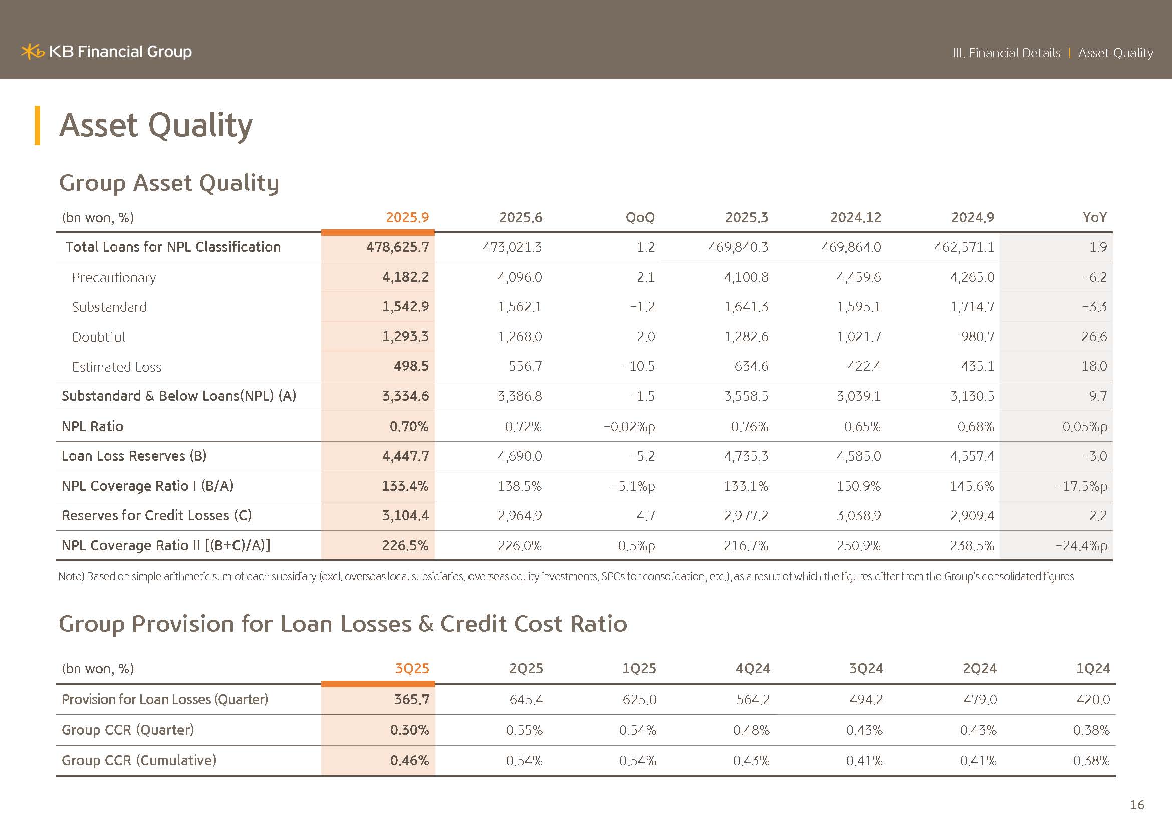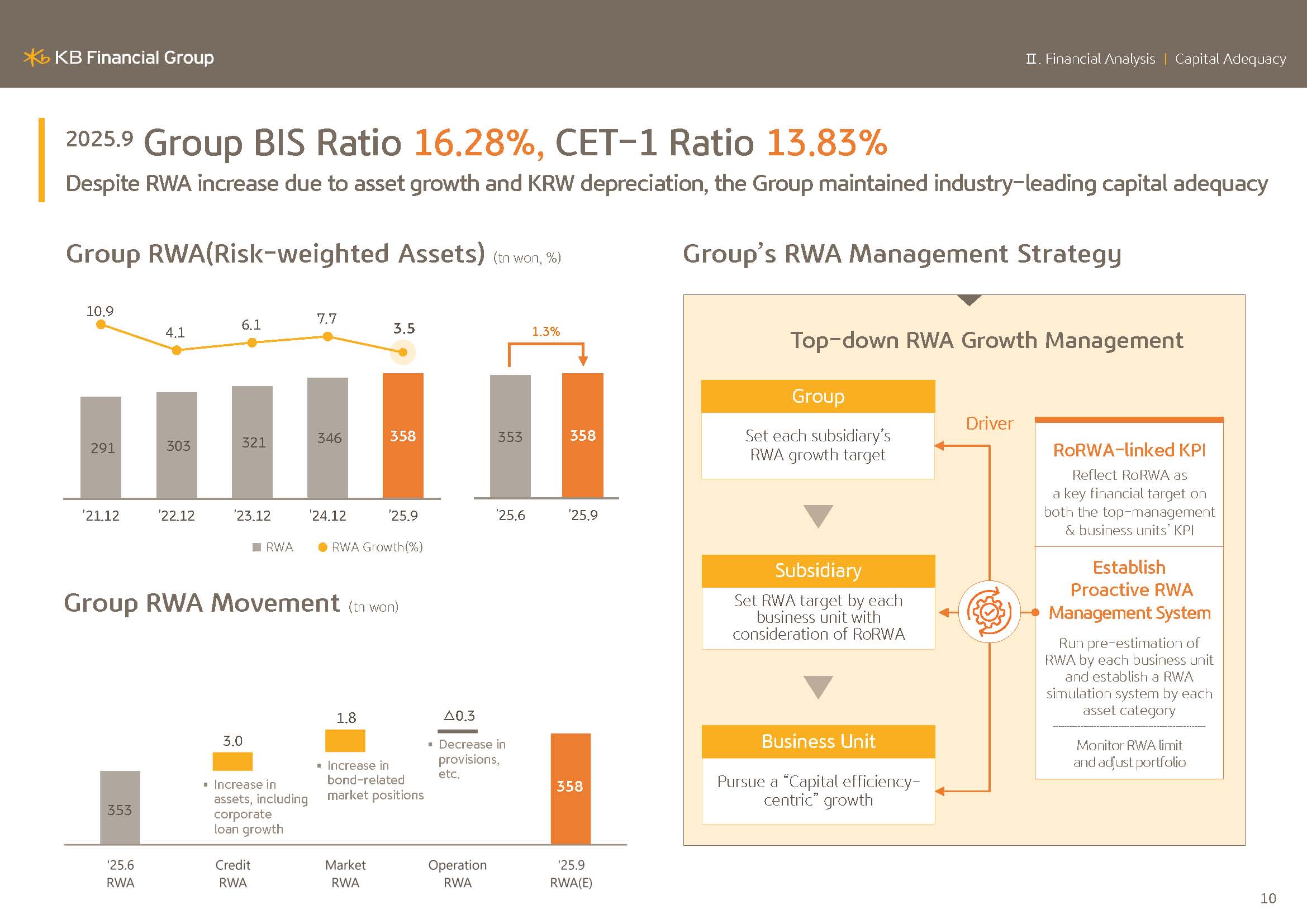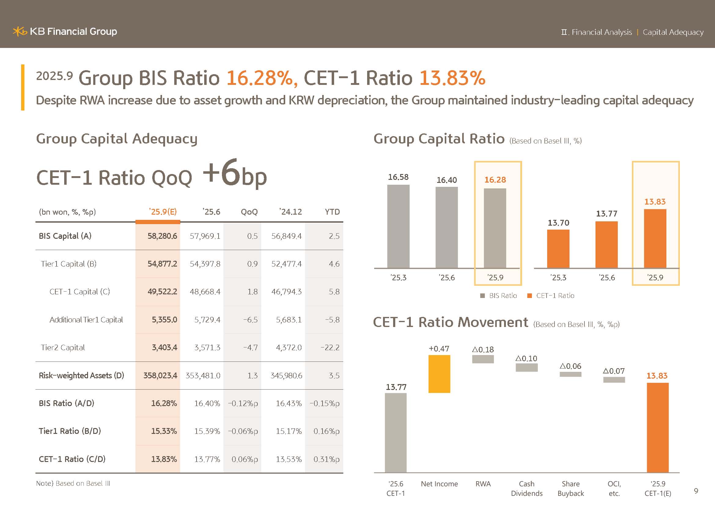 2025 September end group risk-weighted asset posted KRW358 trillion and increased 3.5% compared to