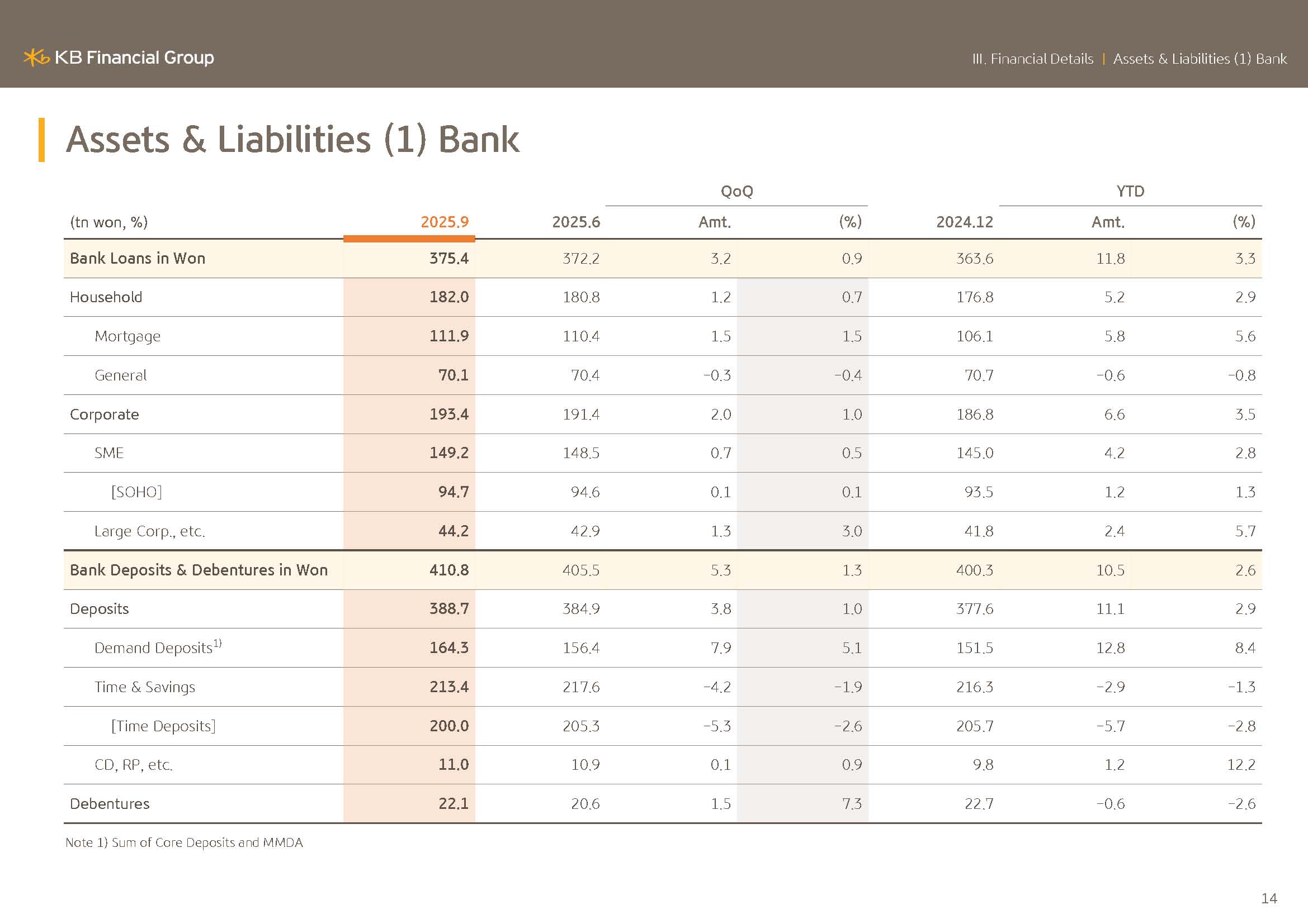 As of end September 2025, bank loans in Won stood at KRW375 trillion, a 3.3% growth compared to last