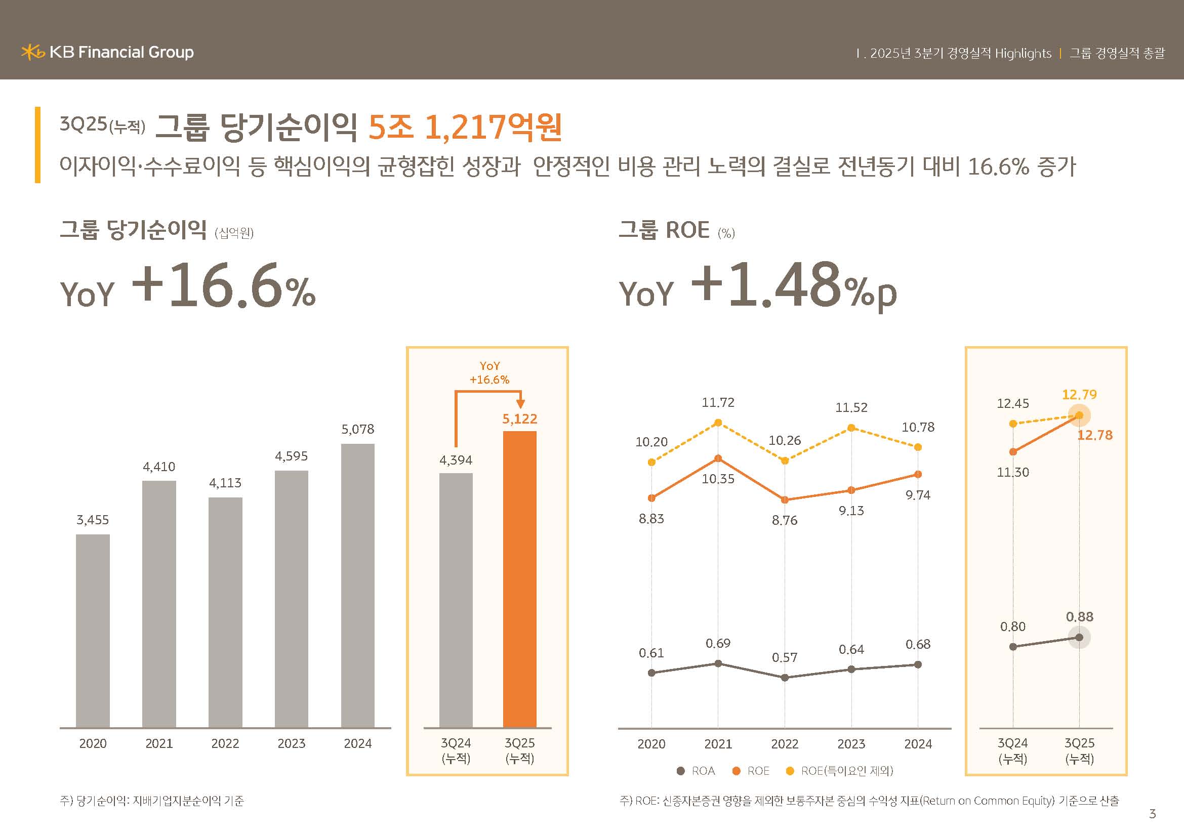 저는 KB금융그룹 IR본부를 맡고 있는 권봉중입니다. 그럼 지금부터 2025년 3분기 실적발표회를 시작하도록