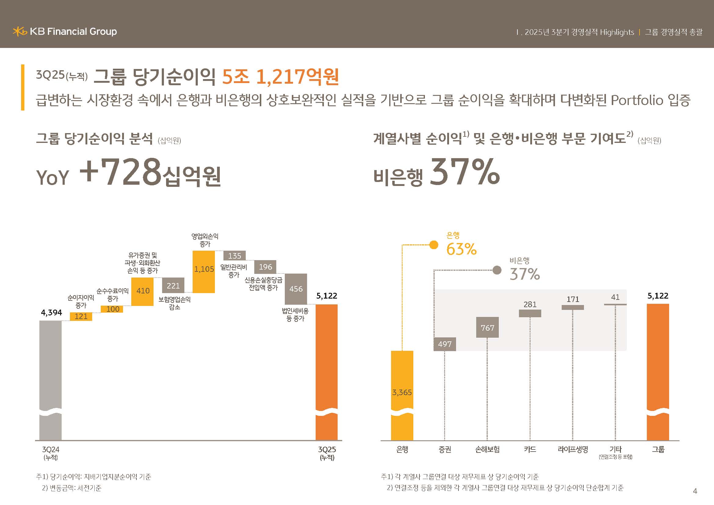 KB금융그룹은 견고한 펀더멘탈을 기반으로 대외 불확실성을 흡수하며 안정적인 이익 창출력을 이어가고 있습니다.