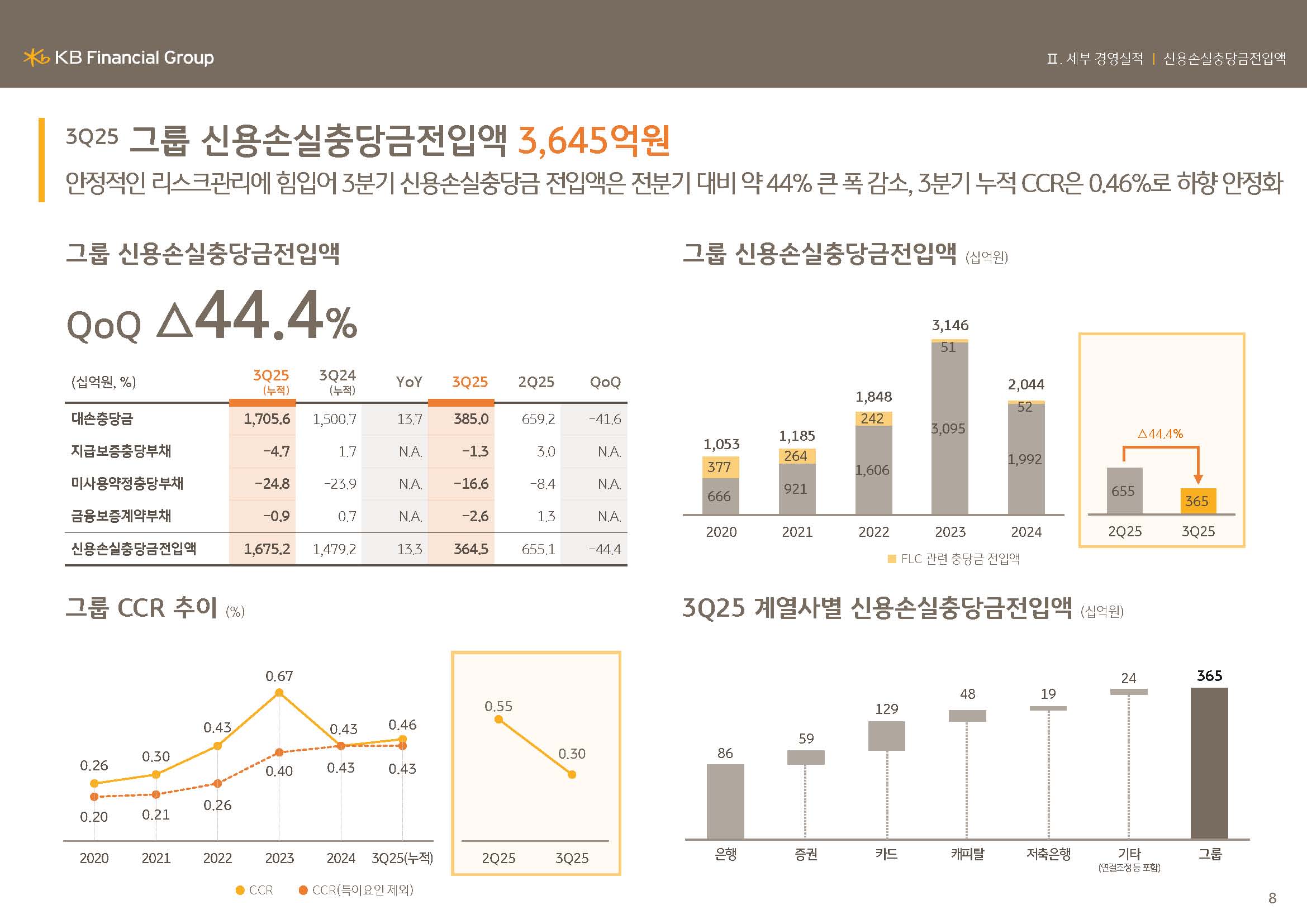 다음은 8페이지, 그룹 신용손실충당금전입액 입니다.