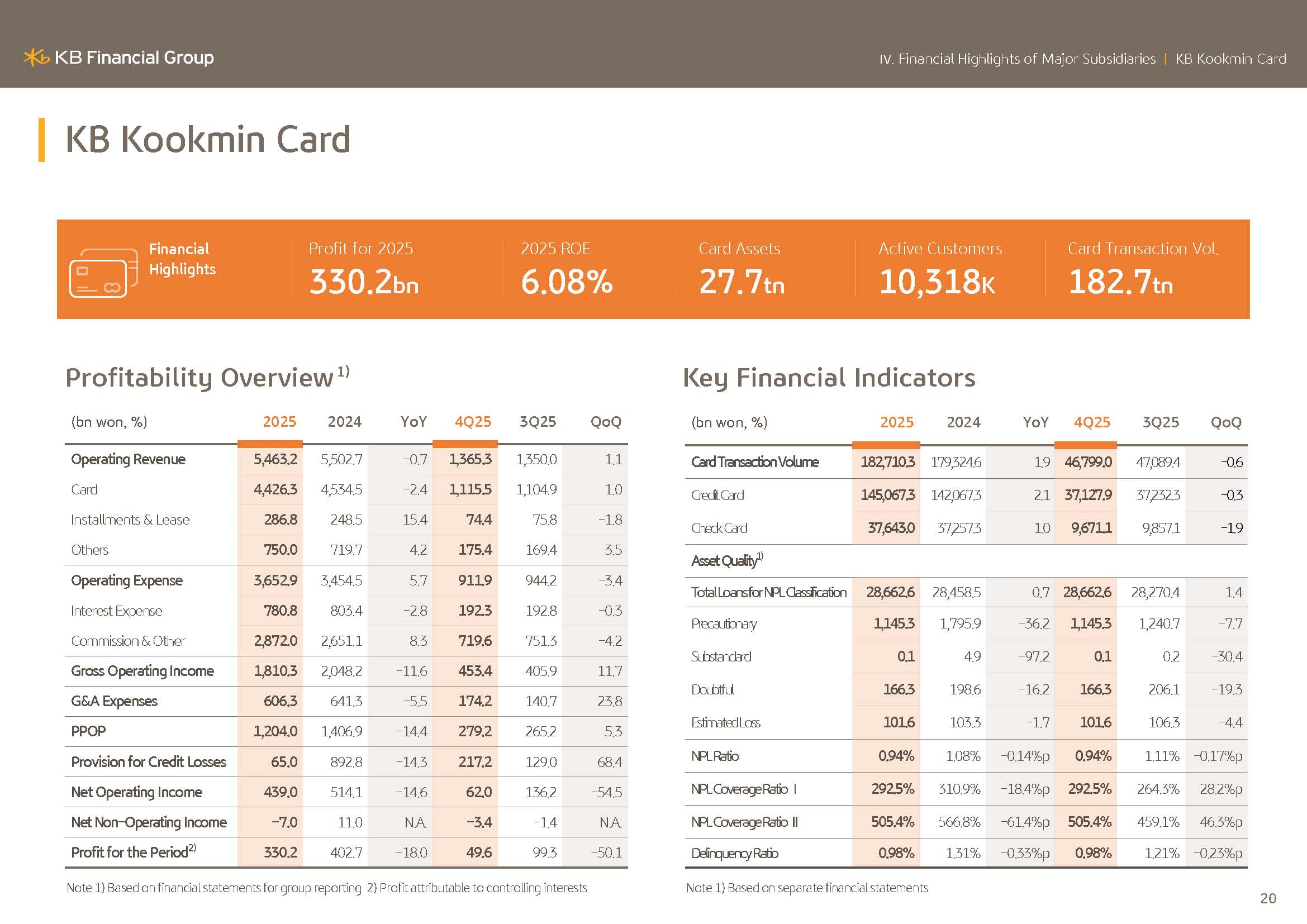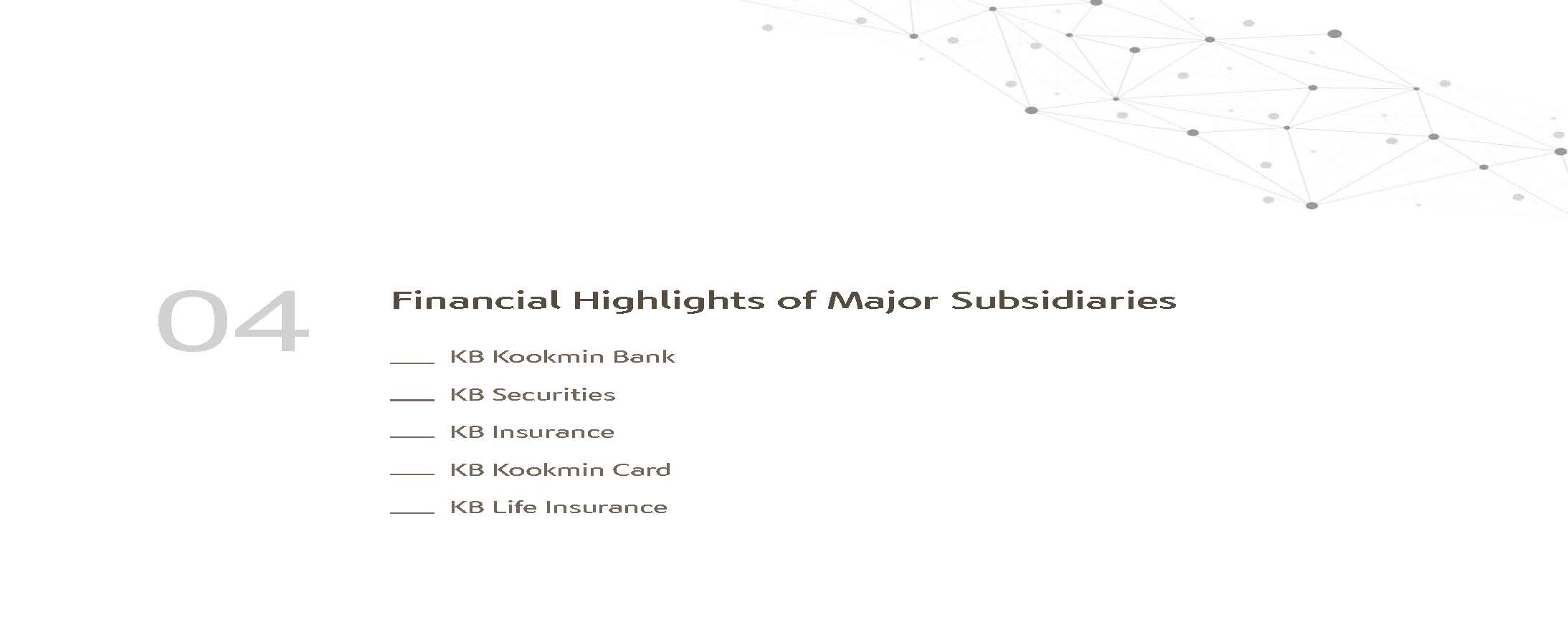 Next, I will cover KBFG business results.